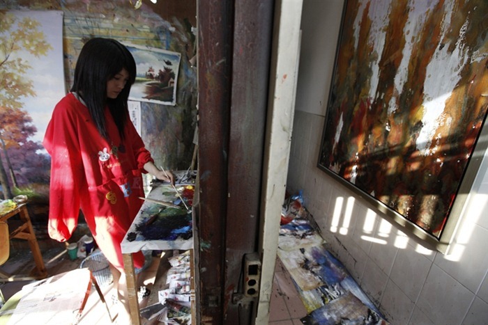 Dafen is a small village in the suburb of Buji, in Longgang District of Shenzhen whose sole purpose is to mass produce replicas of western art to be sold to shops, restaurants, hotels, galleries, and tasteless consumers across the world. The village boasts over 5,000 artists working in 600+ galleries who churn out over 5 million paintings each year.
